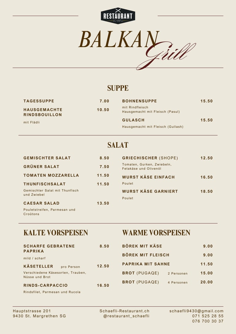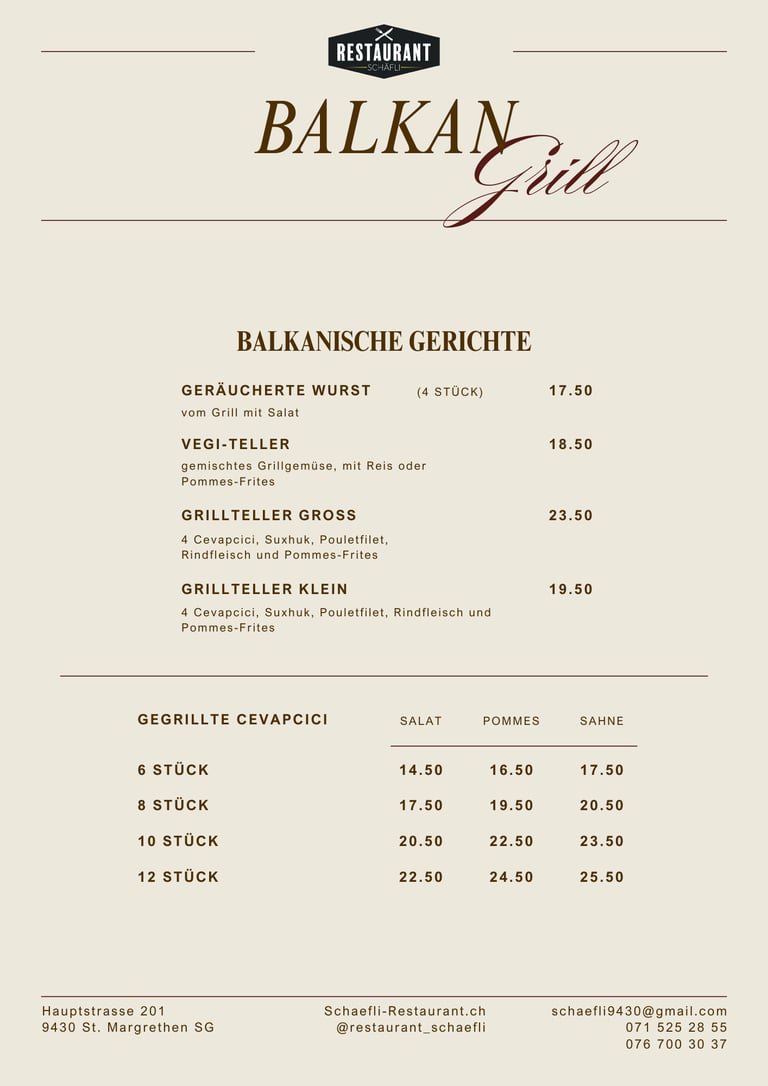 Unsere Speisekarte ist eine Hommage an die reiche kulinarische Vielfalt des Balkans. Von herzhaften Grillgerichten über aromatische Eintöpfe – Geniesse aber auch die einheimische Küche und lasse dich von den Wochenmenüs verwöhnen.
